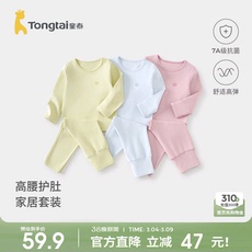 婴儿短袖家居服套装夏季薄款莫代尔女宝宝短袖T恤高腰大PP裤长裤