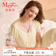带胸垫睡衣女2026新款夏季莫代尔棉短袖长裤时尚可外穿家居服套装