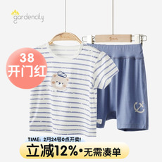 婴儿家居服套装夏季薄款莫代尔凉感宝宝睡衣条纹短袖T恤大PP短裤
