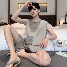睡衣男莫代尔夏款背心无袖短裤2024新款纯色可外穿男士家居服套装