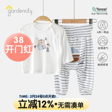 婴儿家居服套装夏季薄款莫代尔提花男女宝宝9分袖上衣高腰大PP裤