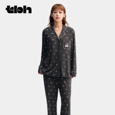 ZURICH HOME 亲肤舒适 绵软透气 莫代尔拼蕾丝衬衫领家居服套装