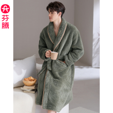 睡衣男秋冬季珊瑚绒加厚加绒长款睡袍套装青少年大码中学生家居服