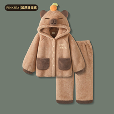 冬季睡衣女款珊瑚绒加厚卡皮巴拉可爱情侣家居服秋冬新款套装男士