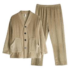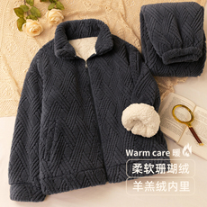 2025年秋冬新款海岛绒男士睡衣套装长袖保暖开衫珊瑚绒薄绒家居服
