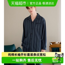 芬腾男士睡衣春秋季纯棉长袖开衫套装条纹青年宽松休闲大码家居服