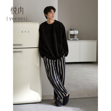悦内睡衣男士春秋款秋季纯棉长袖家居服男款黑色高级感加大码套装