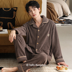 都市丽人法兰绒睡衣男款秋冬季珊瑚绒保暖加厚休闲家居服套装外穿