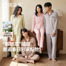 顶瓜瓜纯棉睡衣女款秋春带胸垫长袖简单家居情侣家居服套装男士