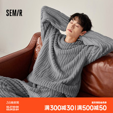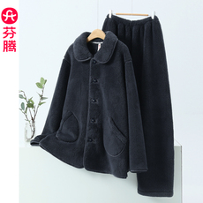 半边绒男士睡衣秋冬季冬款加厚保暖可外穿大码套头珊瑚绒家居服男