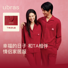 ubras云棉红色家居服女婚礼新婚本命年情侣套装男款长袖长裤秋季