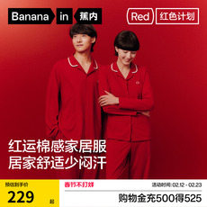 红豆居家红色情侣睡衣结婚纯棉男本命年春夏季家居服套装新婚礼物