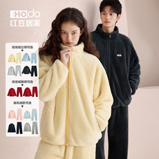 红豆情侣睡衣珊瑚绒冬季立领拉链男抗静电外穿运动加厚家居服套装