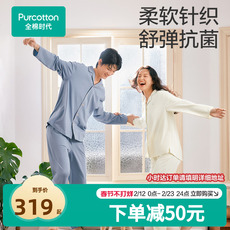全棉时代睡衣男女士针织家居服情侣套装7A抗菌除螨纯棉睡衣春秋季