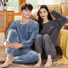 芬腾珊瑚绒情侣睡衣冬季女款加厚大码法兰绒男士秋冬款家居服套装