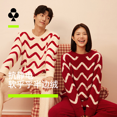 有棵树睡衣秋冬款女半边绒本命年情侣套装红色结婚圣诞男士家居服