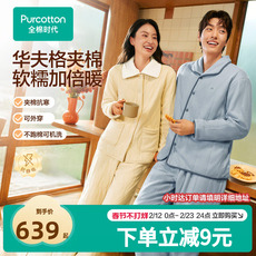 【线下同款】全棉时代情侣款男女华夫格夹棉睡衣家居服保暖柔软冬