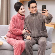 马克公主情侣睡衣女冬季珊瑚绒加厚拉链套装保暖男士可外穿家居服