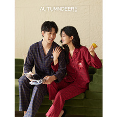 【清仓福利99元】秋鹿春秋季长袖长裤情侣睡衣女秋冬男中年家居服
