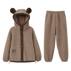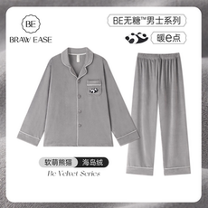 tbh野兽派家居熊猫嘭嘭法兰绒家居服套装可外穿秋冬长袖情侣睡衣