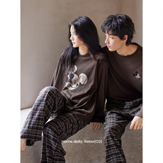 情侣款 纯棉磨毛家居服套装 男女士全棉睡衣睡裤长款起居服春秋款