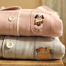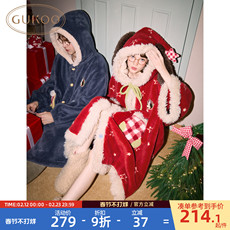 Gukoo/果壳情侣睡袍冬季保暖新款轰轰小狗睡衣女家居服男睡袍D