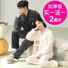 都市丽人法兰绒情侣秋冬季加绒加厚珊瑚绒大码男女新款家居服套装