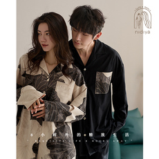 妮狄娅情侣睡衣女春季柔软棉长袖国风开衫款男简约春秋家居服套装