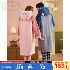 gukoo情侣睡衣冬新款情侣珊瑚绒睡袍可爱男士家居服冬季情侣睡衣D