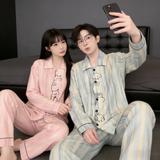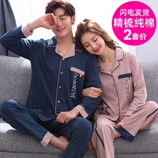 情侣睡衣长袖纯棉春秋款情侣装一男一女可外穿薄款秋冬家居服套装
