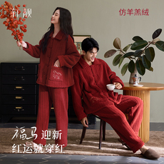 轩靓【抗静电】仿羊羔绒情侣新中式睡衣女冬加厚红色马年男家居服