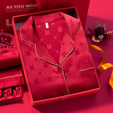 乐姿梦冰丝情侣睡衣女春秋红色长袖薄款结婚高级感喜庆家居服夏季