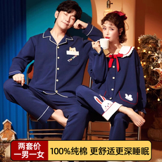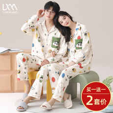 情侣睡衣纯棉长袖春秋季情侣装一男一女秋冬薄款可外穿家居服套装