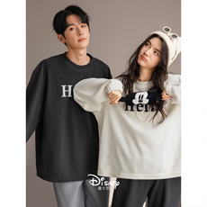 迪士尼情侣睡衣女款秋冬季可爱珊瑚绒家居服男保暖半边绒大码套装