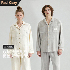 PaulCozy极简情侣睡衣春秋季A类双层纱婴儿棉长袖男女纯棉家居服