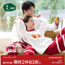 sofu软糯红色半边绒家居服女冬加厚情侣结婚本命年睡衣套装可外穿