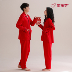 轩靓【纯棉】新中式情侣睡衣女夏季短袖长裤红色结婚家居服男套装