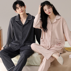 宜色家新款秋款美拉德暖空气四层纱睡衣套装女纯棉加厚情侣家居服