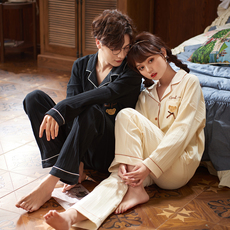 悦内情侣睡衣女款春秋季长袖纯棉家居服秋冬男款休闲宽松大码套装