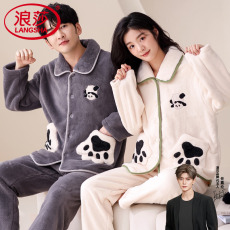 浪莎情侣睡衣珊瑚绒秋冬季加绒加厚保暖法兰绒男女士家居服套装
