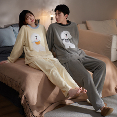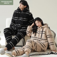 芬腾可安情侣睡衣女士秋冬季珊瑚绒加绒加厚套装三层夹棉法兰绒男