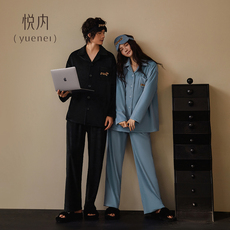 芝桃鸟春秋季冰丝睡衣情侣黑色男仿真丝绸香槟女款家居服套装秋款
