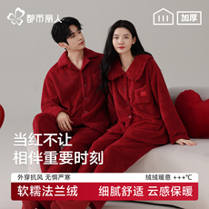 hello beiyan_怦然心动 新年红色情侣睡衣女冬季珊瑚绒男士家居服