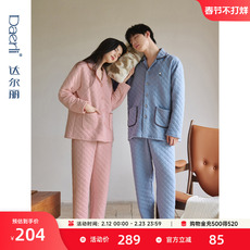 【柔感】家乐芬情侣睡衣女士春秋款秋季纯棉长袖家居服男款女套装