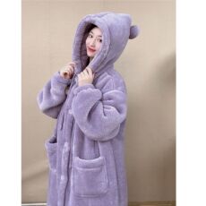 可外穿两用领睡衣男女秋冬季珊瑚绒加厚保暖长袖情侣家居服套装