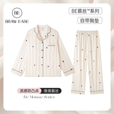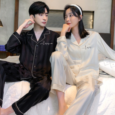 冰丝睡衣女款秋春带胸垫情侣家居服套装丝绸夏季长袖2026新款男士