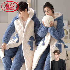 浪莎情侣睡衣秋冬季法兰绒加厚保暖男女拉链休闲可外穿家居服套装