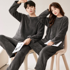 情侣睡衣女冬季珊瑚绒加厚加绒简约韩版可外穿男士套头家居服套装