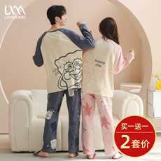 兰秀美情侣睡衣秋款2026新款纯棉长袖春秋款女男士圆领家居服套装
