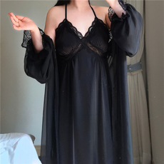 超薄性感睡衣网纱蕾丝小胸纯欲高级感透明女款前开小个子吊带睡裙